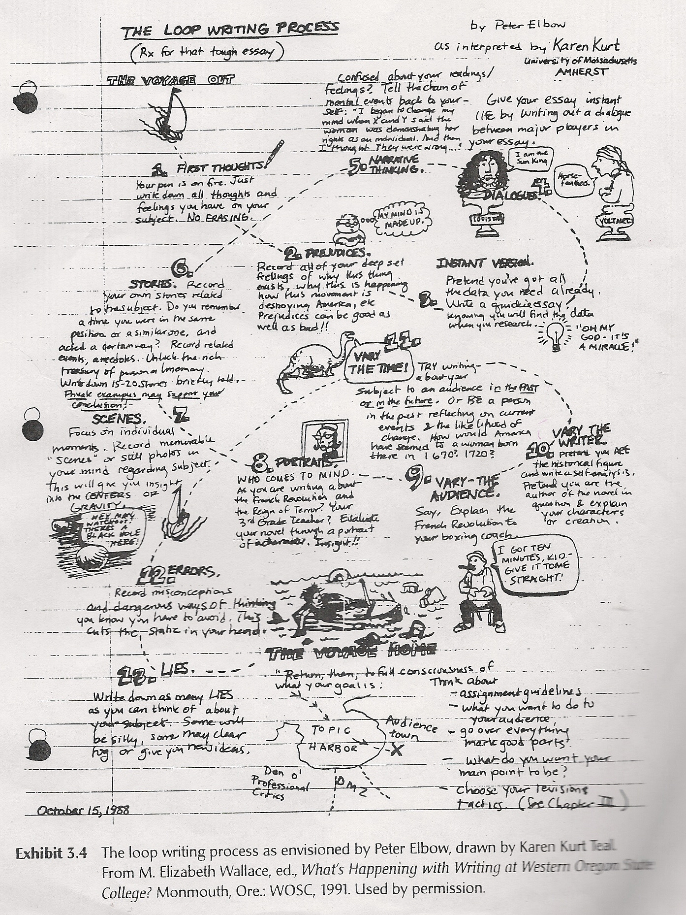 9/14 Discussion of sample papers. Discovery draft. HOMEWORK: Do Loop Writing for your paper. Omit #6, since you're basically telling a story in the paper as a whole. You MUST DO numbers 4, 8, 9, and -- at least TWO (rough, first-draft) paragraphs apiece. Choose three other activities to do. 9/19 Work/conferencing period. Playing with your ideas. 9/21 WORKSHOP. 9/26 Work/conferencing period. 9/28 Project 1 due. Proofreading. Reflective memo.