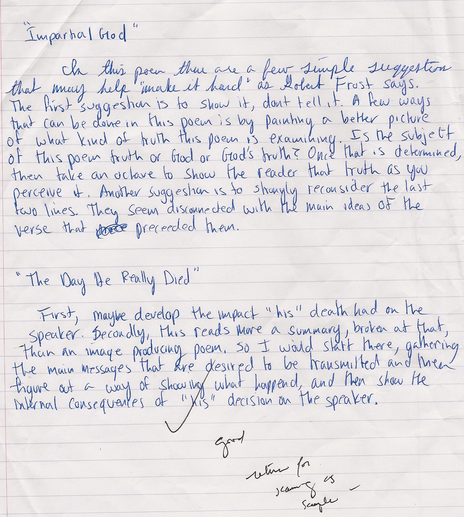 "Impartial God/The Day He Really Died". Sample freewrite.