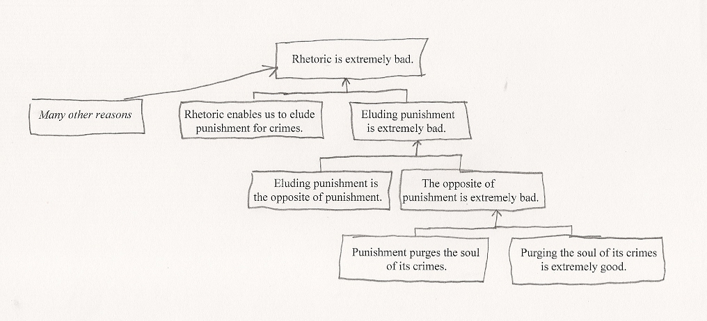 3. (Due 9/24) Do an argument map of a short chunk of Socrates' reasoning from either the Phaedrus or the Gorgias. See here for a simple explanation/how to. Sample here.
