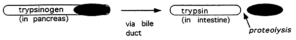 i.e. Trypsinogen (proenzyme) ---------> Trypsin (active form)