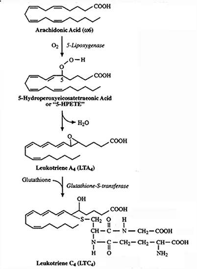 Conversion of Arachidonic Acid to Series 4 Leukotrienes: